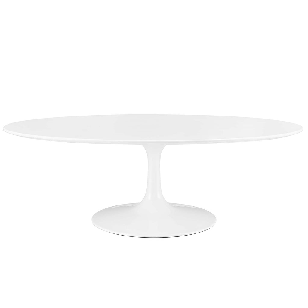 Let modern inspiration flow while gathered around the Lippa 48" Oval Coffee Table. Perfect for hosting a morning cup of coffee or entertaining family and friends, this pedestal table features a spacious surface. Its oval tabletop is crafted with durable MDF with a high gloss finish and beveled edge for a contemporary yet timeless design. Embodying an iconic mid-century silhouette, this pedestal coffee table floats on a sleek tapered metal pedestal base with a chip-resistant lacquered finish. Includes non-marking felt pad to protect flooring. Assembly required. Set Includes: One - Lippa 48" Coffee Table
