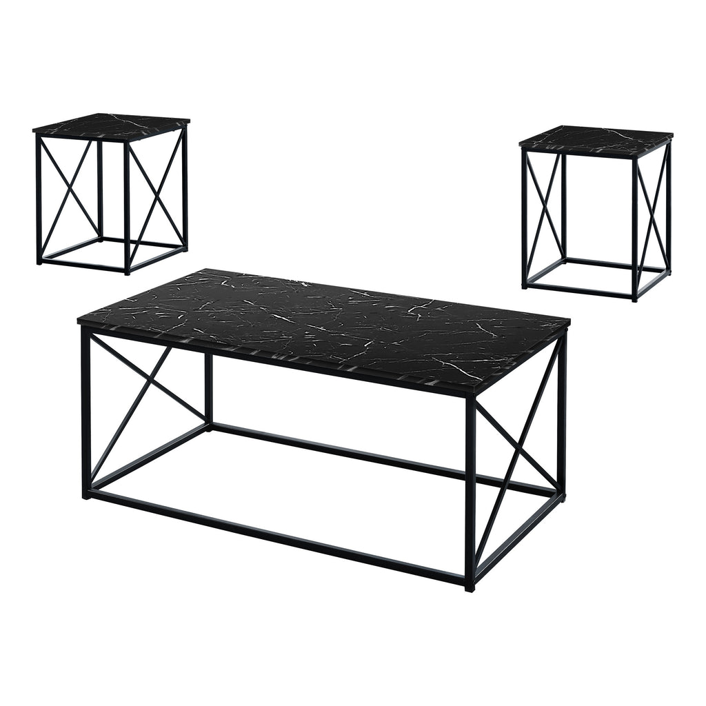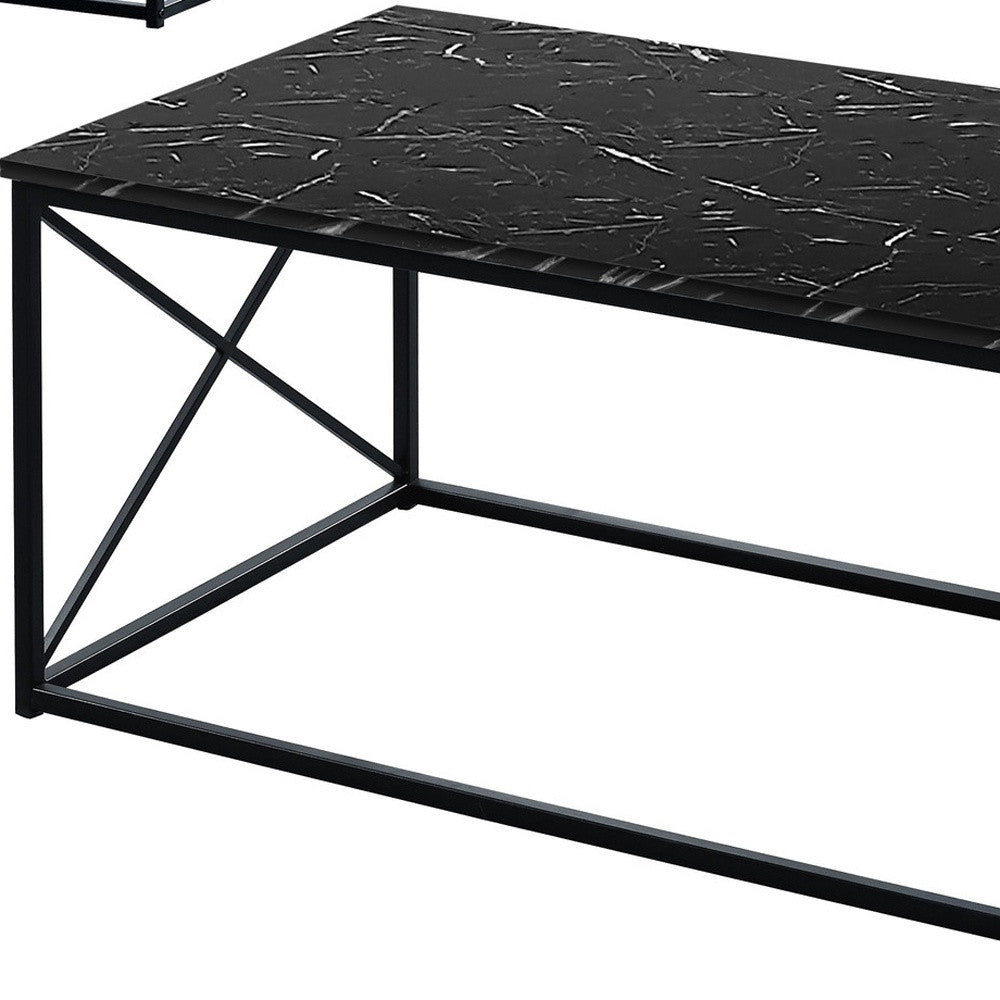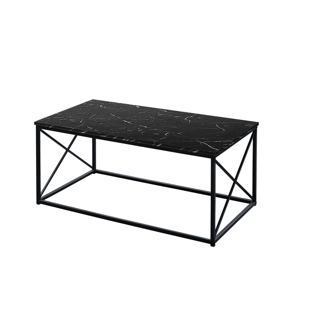 This coffee table set is just what you need to get your living room or lounge area set up and ready. A solid black metal frame is finished off with a matching black manufactured wood top, giving this table a chic monotone look. This rectangular table is an classic yet updated way to accent your room. If you're looking for something that can fit into a living area, bedroom, or office, this coffee table is for you. This coffee table is the sturdy, reliable and stylish answer to your living room needs. 18.25-inch H x 42.25-inch W x 22-inch D