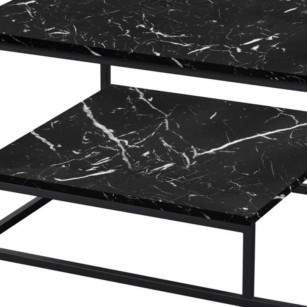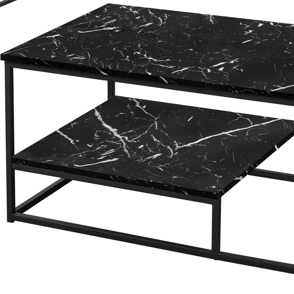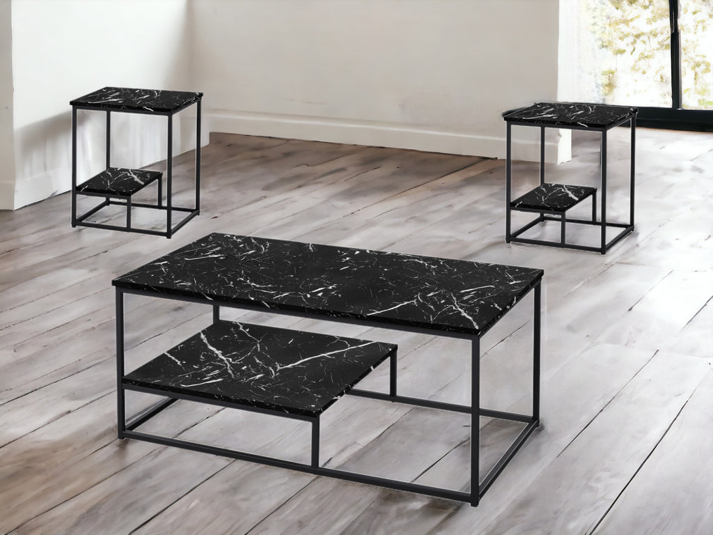 Set Of Three 42" Black Rectangular Coffee Table With Shelf