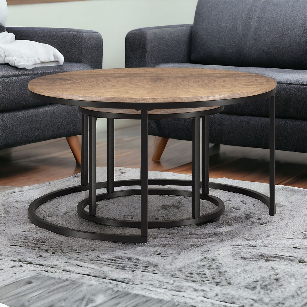 Set of Two 35" Brown And Black Steel Round Nested Coffee Tables