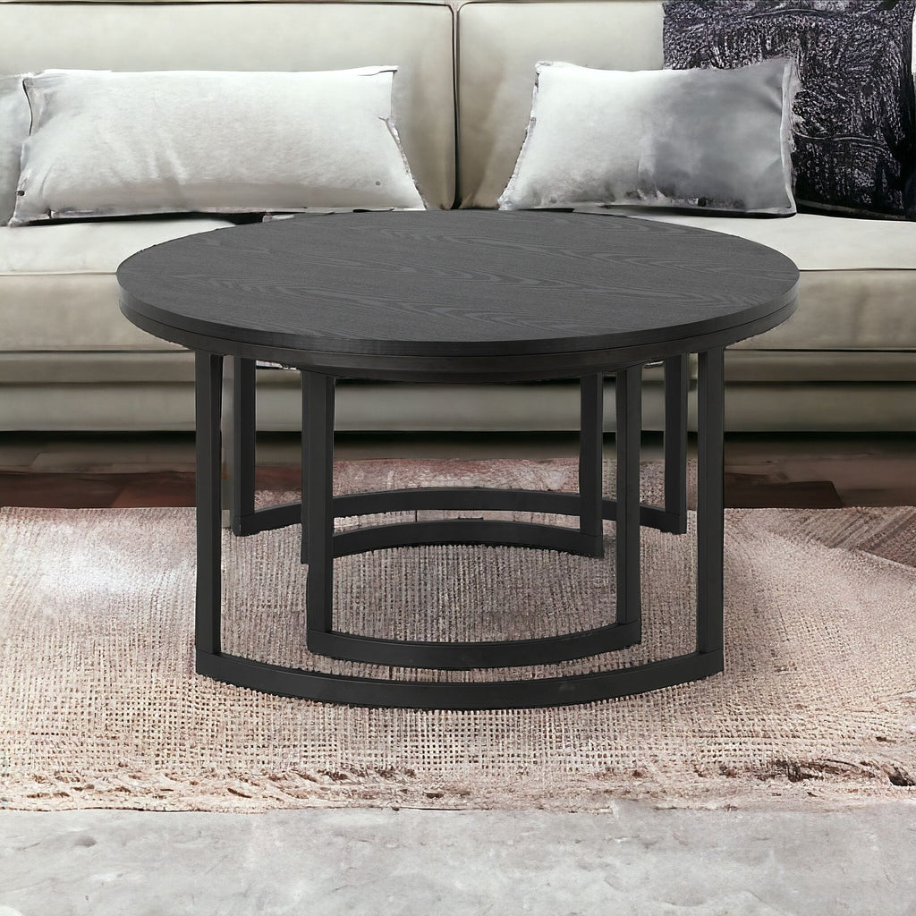 Set of Two 36" Black Steel Round Nested Coffee Tables