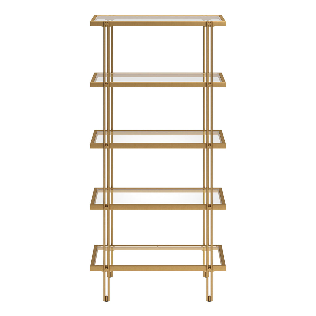 68" Gold Metal And Glass Five Tier Standard Bookcase