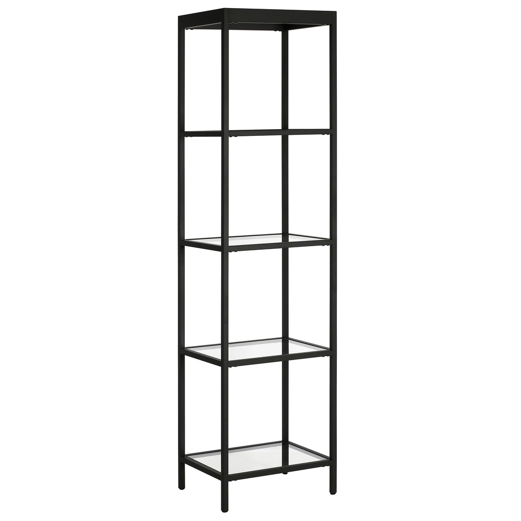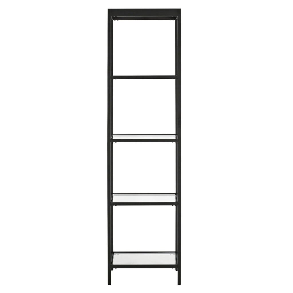 This 70-inch black metal and glass four tier bookcase is a fresh and updated way to help you keep your space neat and organized. Features 4 shelf tiers for storing books, displaying photographs, plants, or other decorations. This bookcase is perfect for use alone or in multiples in most any living or office space. Carefully crafted to fit in tight spaces, you can turn almost any nook into a stunning display showcase for books, plants decor and more. 70-inch H x 18-inch W x 14-inch D