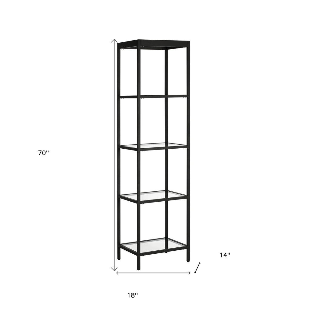 70" Black Metal and Glass Four Tier Bookcase