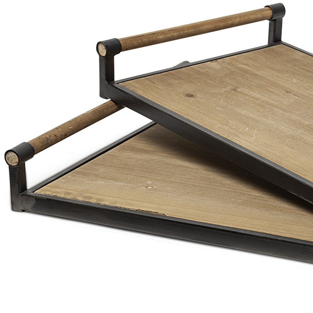 Meticulously Crafted From Metal, Glass And Wood, Is A Stunning Rectangular Mirror That Is Just As Functional As It Is Visually Interesting. Has A Wood And Metal Frame And Flaunts A Clear-Glass Bottom That Reveals A Geometrically Appealing Pattern On The Metal Frame. It Is Also Equipped With Two Handles On The Sides For Convenient Hauling Of Small Items.