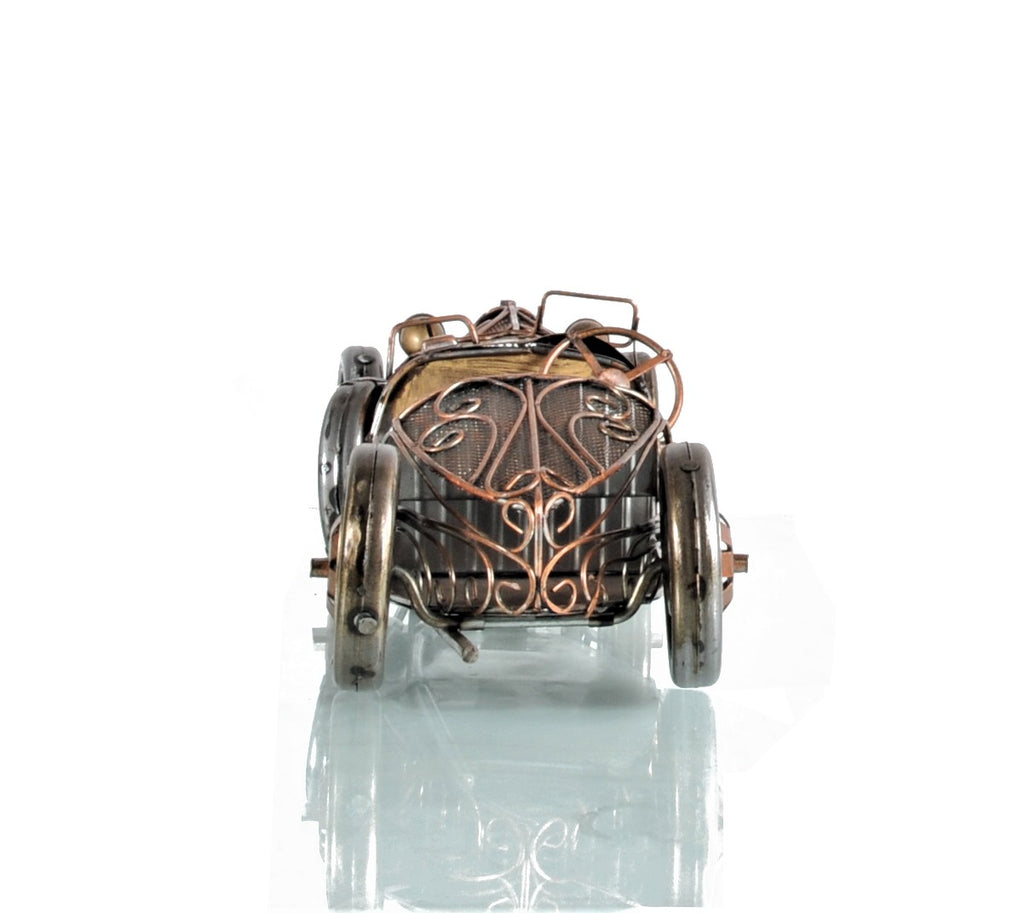 Add some striking desk or shelf décor to your space with this c1924 Bugatti Bronze and Silver Open Frame Racecar Model Sculpture. This type 35 Bugatti model features the five famously iconic tires and a open skeleton frame that showcases the silver and bronze details. A great accent for your car enthusiast or race car collector! 4" x 15.3" x 5