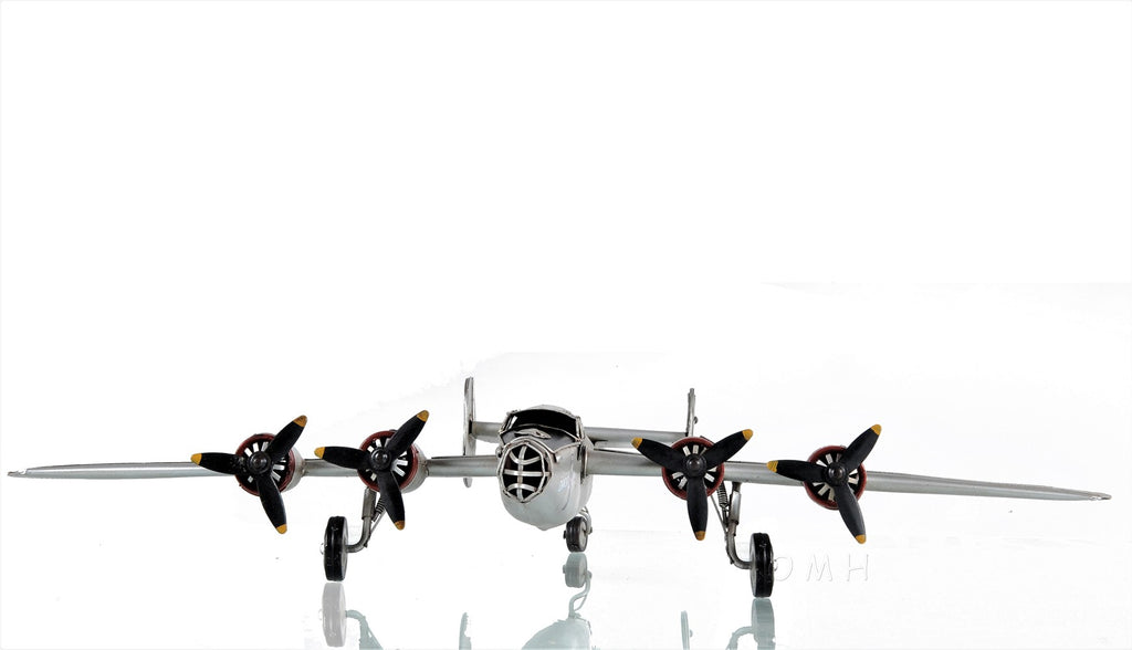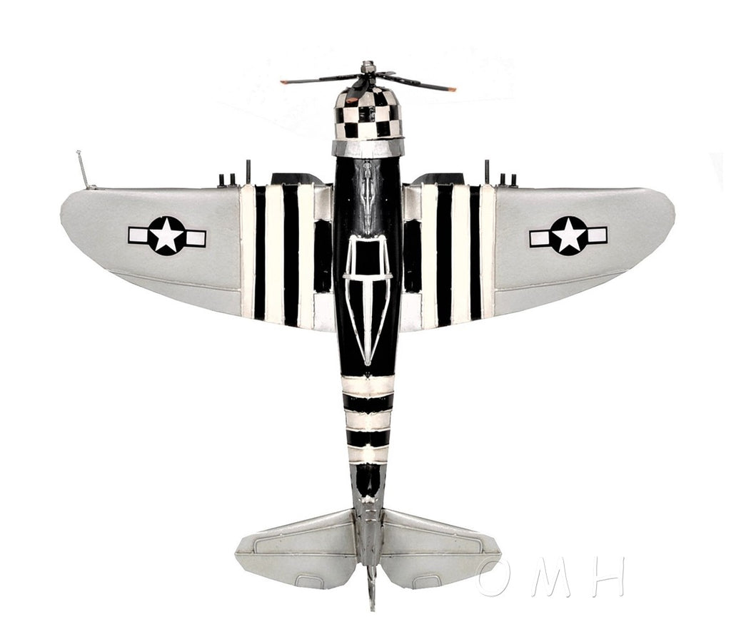 A beautiful replica of the iconic WWII American Army bomber-fighter, the c1943 Republic P-47 Thunderbolt Sculpture is handmade out of metal and accurately detailed. It comes with remarkable details such as landing wheels, a cockpit, a rotating propeller and is painted with authentic WWII paint and symbols. It is a sought-after piece for aviation and WWII enthusiasts. 4.37" x 12" x 14"