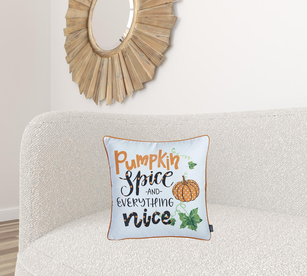 Decorate for fall season with this great Set of Four 18" Orange Green Pumpkin Halloween Throw Pillow Covers. This is a mixed set of four that includes a solid orange cover, a solid green cover, and two decorated covers. The printed covers are solid on the back side and decorated on the front; one with a pumpkin design and one with a Halloween saying. Together this fun set are just what you need to make your space feel cozy and ready for the season. Made of soft and luxurious brushed polyester, these pillow covers include a zipper for easy insert or removal of an insert. 18" x 18" x .5" each. Set of 4.