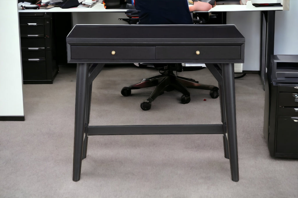 36" Black Solid Manufactured Wood Writing Desk with Two Drawers