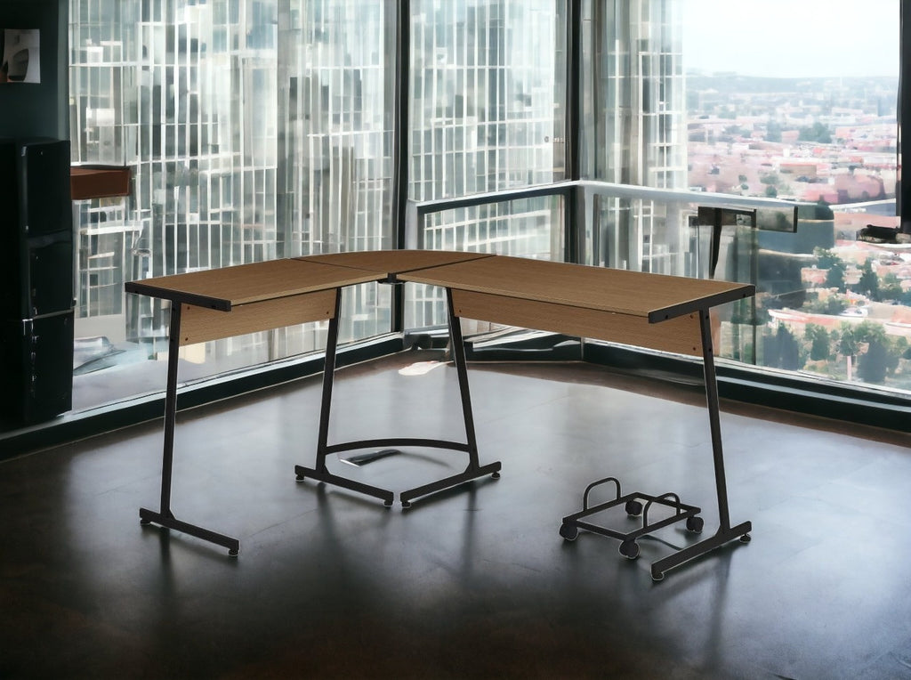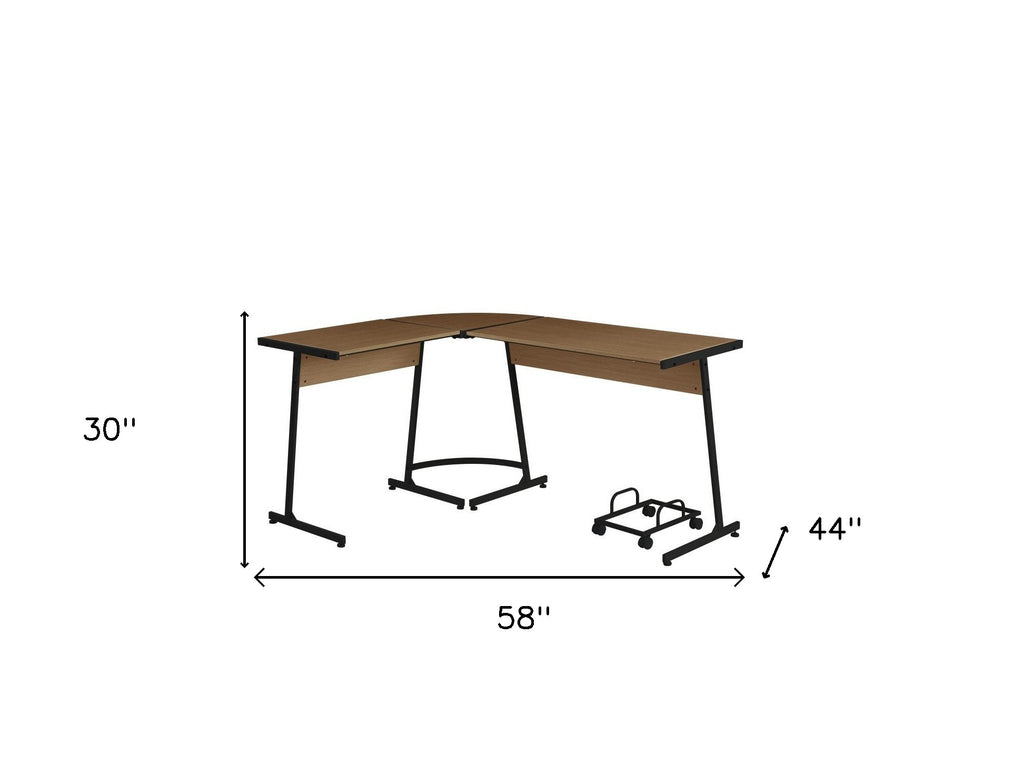 Look like an executive when you add this 58-inch brown and black l shape computer desk to your office space. Made for the ultimate in convenience and versatility, this desk can be assembled in either direction. Forged with premium craftsmanship and design, this desk is built to last. 30-inch H x 58-inch W x 44-inch D