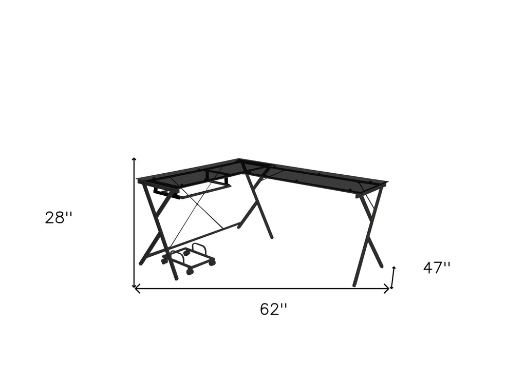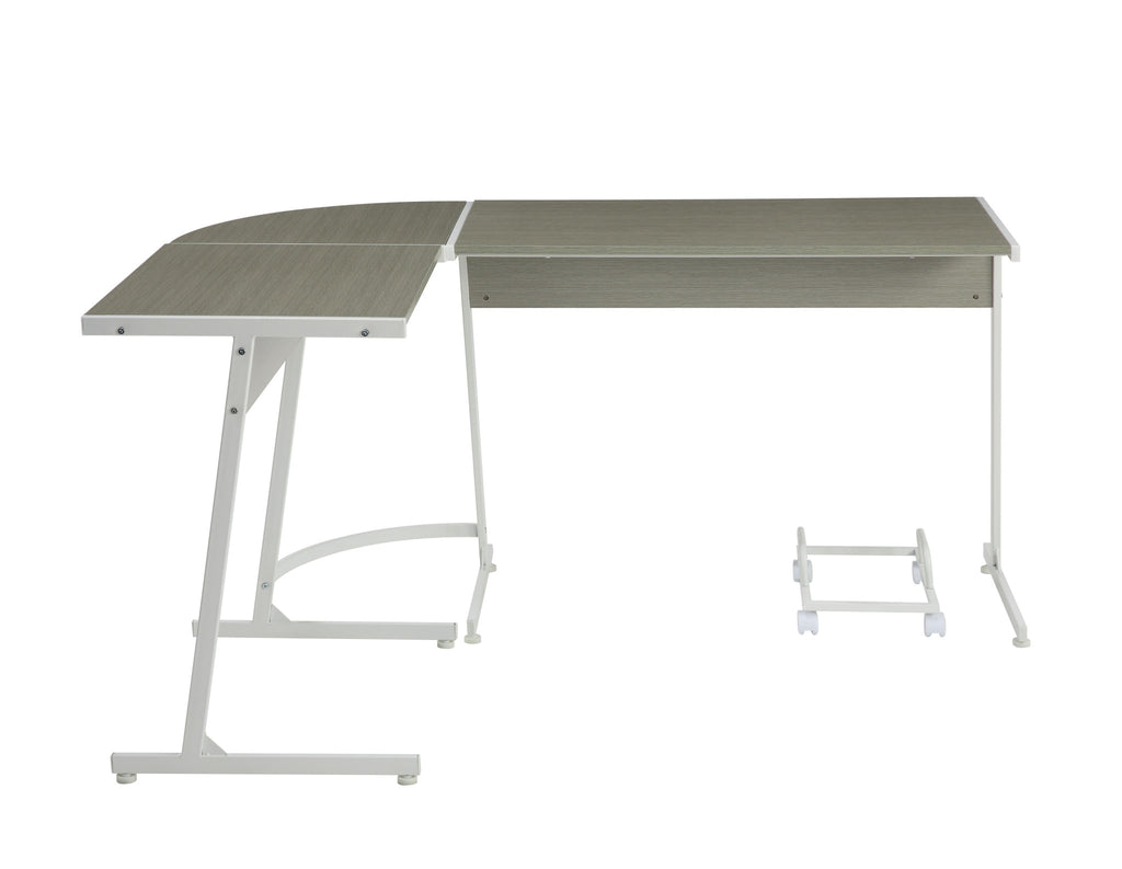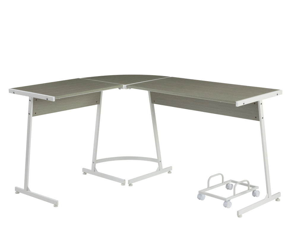 This 58-inch gray and white l shape computer desk will help to turn your office space into an executive suite. Designed so that you can adjust to your room and style preferences, this desk can be assembled in either direction. Built to last, this sturdy desk is designed for comfort and efficiency for years to come. 30-inch H x 58-inch W x 44-inch D