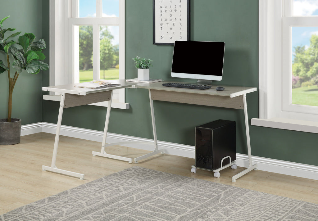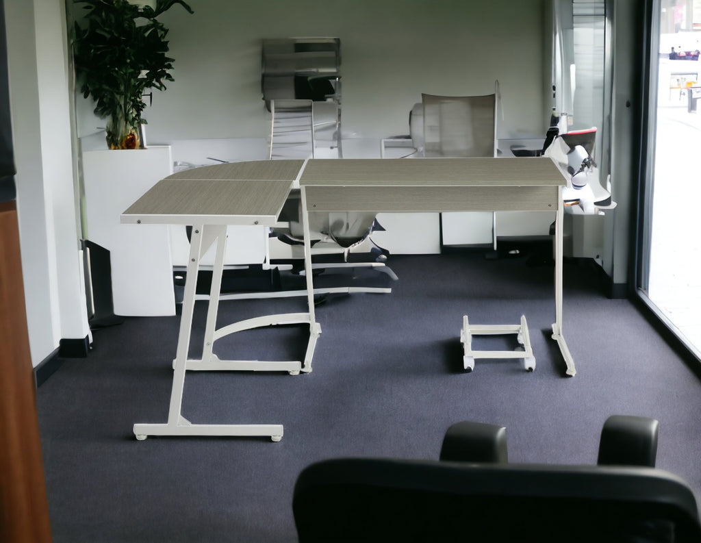 gray white shape computer desk, white shape computer desk, 58" gray white shape computer, shape computer desk, gray white shape computer This 58-inch gray and white l shape...