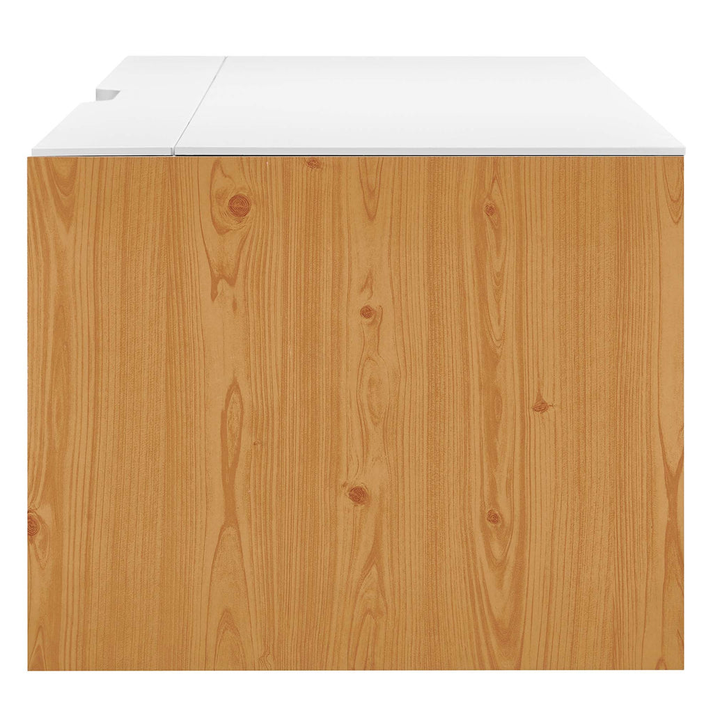A perfect workspace for the home office, college dorm, bedroom, living room, or any other work area, the Kinetic Wall-Mount Office Desk introduces style and function to the modern home. Crafted with durable, lightweight particleboard and a complementing melamine top, this office desk features a spacious work area and a flip-up cable management compartment to keep things neat and organized. With an organic wood grain design, this desk brings natural elegance to any space and mounts directly to the wall to save valuable floor space. Assembly required. Weight Capacity: 130 lbs. Set Includes: One - Wall desk