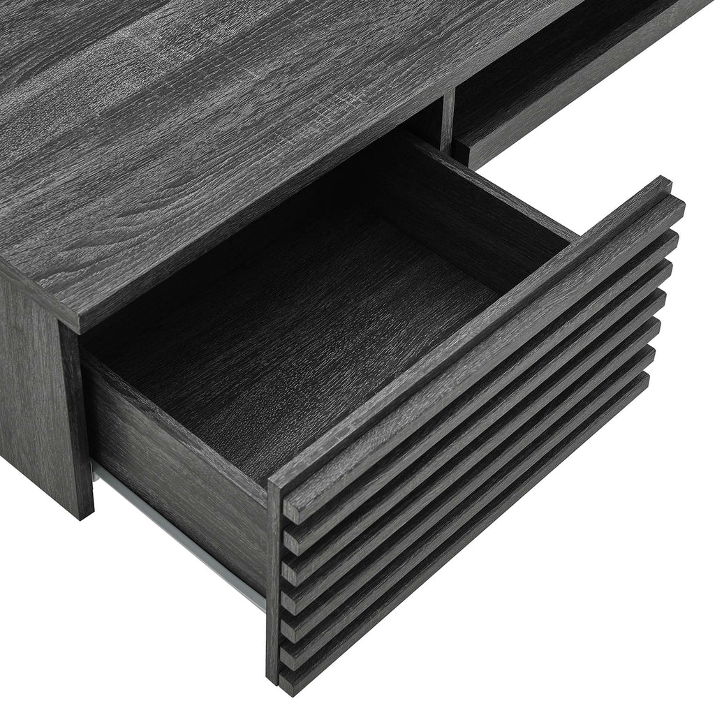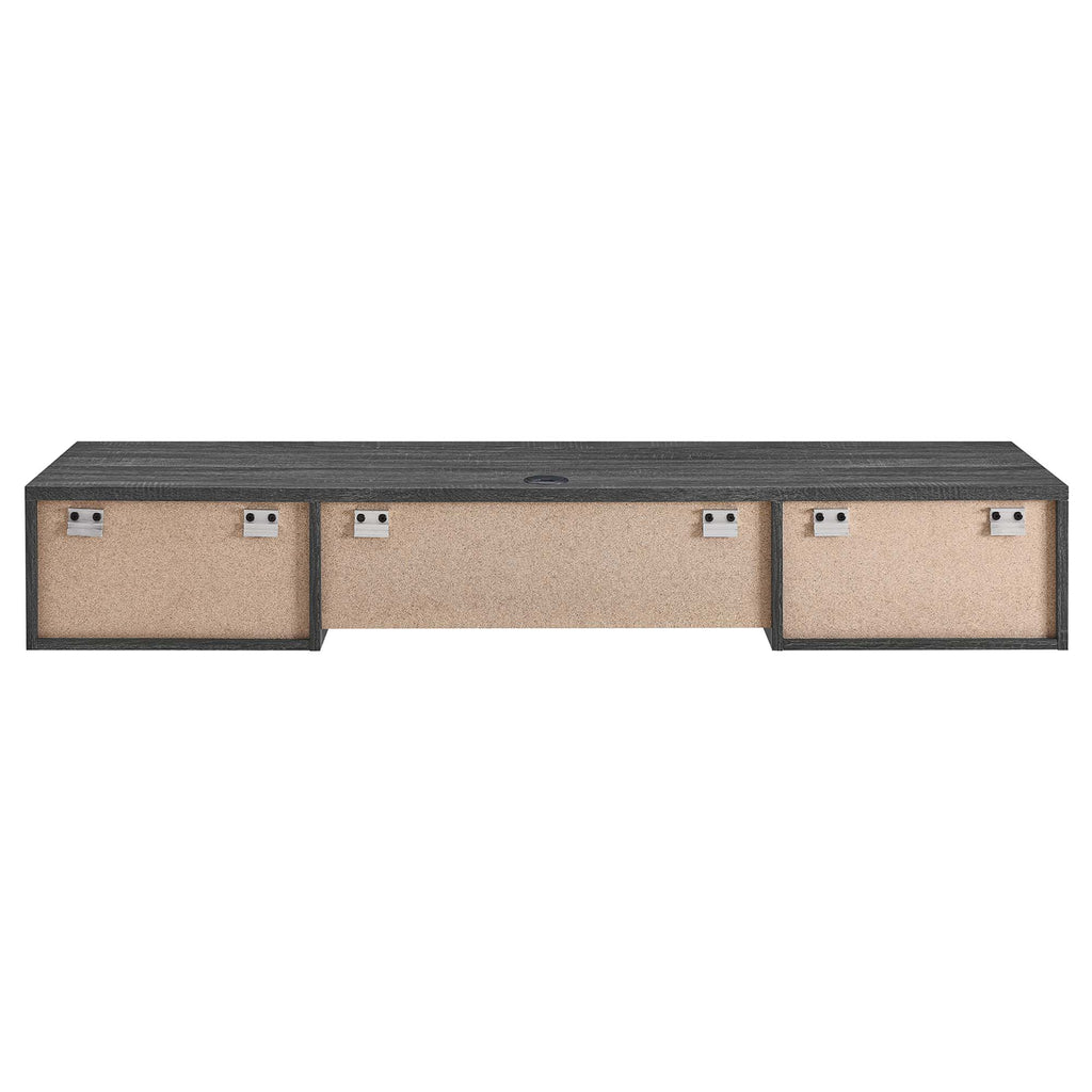 Tap into mid-century aesthetics with the Render Wall Mount Office Desk. This wall-mounted office desk features a durable particleboard frame with a smooth walnut grain laminate, a pull-out keyboard tray, a cable management hole, and two full-extension glide drawers for ample storage space of all your office essentials. Boasting a mid-century modern style and mounting directly to the wall, this computer desk features a solid construction with a pleasing look and practical functionality. Perfect for the apartment, home office, or dorm room. Assembly required. Weight Capacity: 228 lbs. Set Includes: One - Render Wall Mount Office Desk