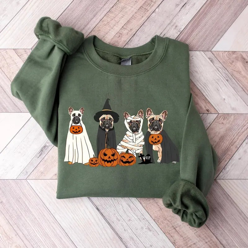 Bulldog Halloween Sweatshirt, Ghost And Witch Bulldog shirt, Bulldog shirt, Dog Lover Gift, Ghost Dog Shirt, Funny French Bulldog Gift Shirt