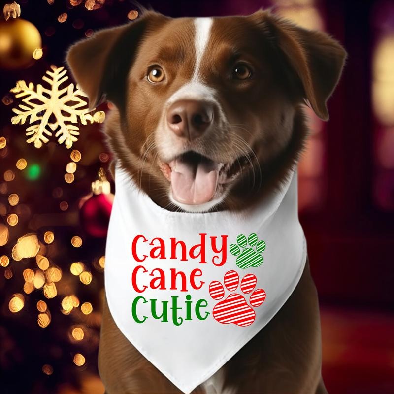 Candy Cane Cutie Bandana, Christmas Dog Bandana, Dog Owner Xmas Neck Scarf, Puppy Holiday Bandana, Pets Lover Christmas Gift Bandana.