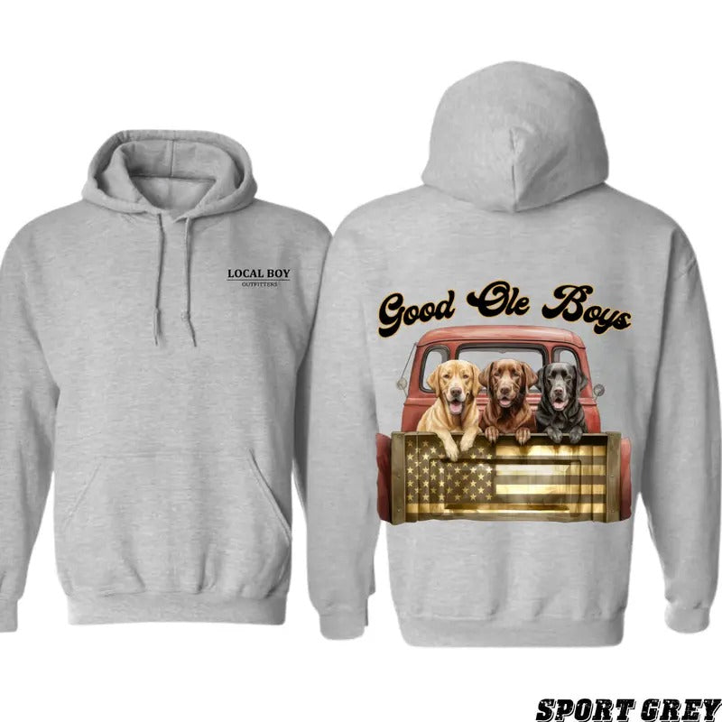 Local Boy Good Ole Boys Hoodie, Funny Dogs Hoodies, Dogs on Truck, Men's Country Outfits, Unisex Comfort Long Sleeve Tops, Soft Cotton Womenswear