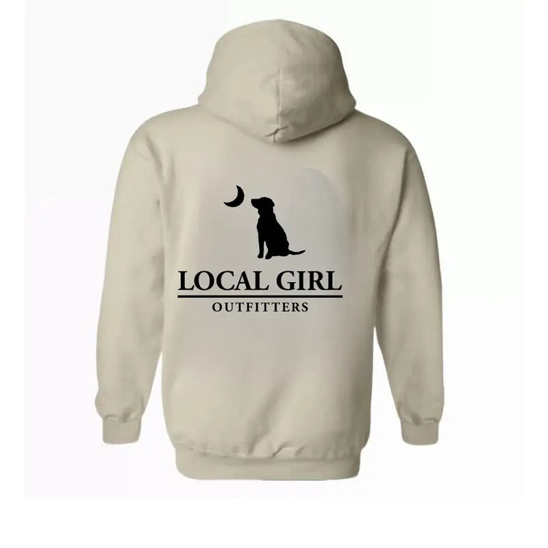 Local Girl Outfitters Hoodie - Bold Pink Camo Dog and Moon Design, Perfect for Outdoor and Nature Loving Girls, Unisex Hoodie Offering Comfort and Style for Everyday Wear TTP