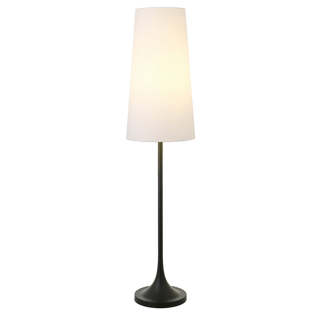 Embrace the good life with this hard working and stylish 60" black novelty floor lamp with white frosted glass drum shade. The base of this lamp is made of black metal. The lamp shade itself has a drum shape and is made of fabric, which makes it a perfect choice. Designed to be unique and visually pleasing while giving great light, this novelty lamp will bring some fun fashion and style to your space The light that this lamp throws is soft and warm to elevate the look of most any space in your home. The perfect lamp to create just the right natural and soothing light in your space. 60" H x 14" W x 14" D