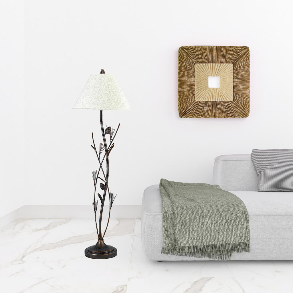 Embrace the good life with this hard working and stylish 60" rusted traditional shaped floor lamp with brown empire shade. The base of this lamp is made of rusted metal. The lamp shade itself has a empire shape and is made of fabric, which makes it a perfect choice. Classically styled, this traditional lamp features a straight pole that extends upwards from a single base. High quality design makes this a great lamp for not only lighting, but accenting a room with style. The perfect lamp to create just the right natural and soothing light in your space. 60" H x 18" W x 18" D