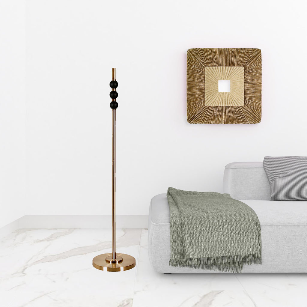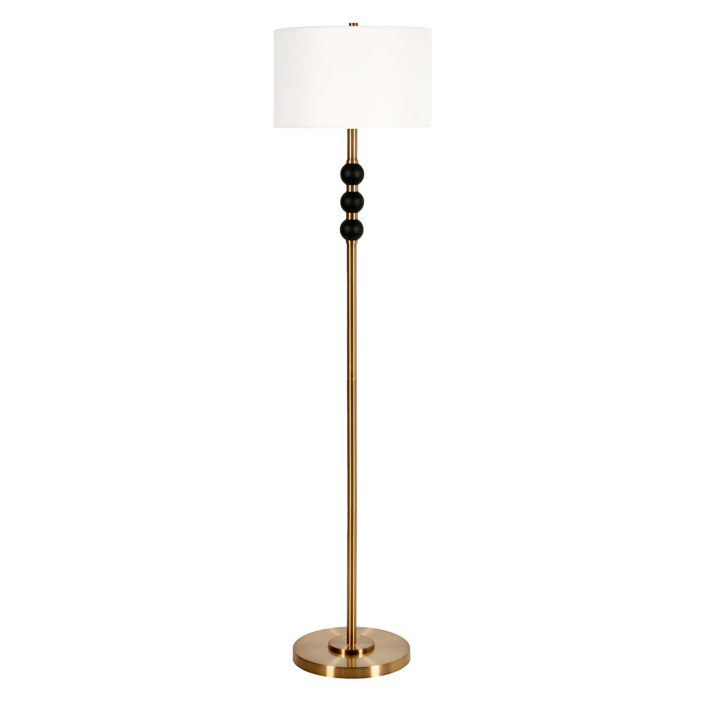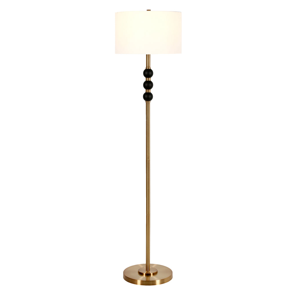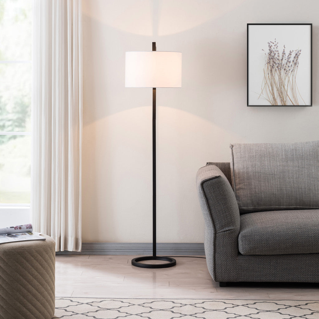 Embrace the good life with this hard working and stylish 62" black traditional shaped floor lamp with white frosted glass drum shade. The base of this lamp is made of black metal. The lamp shade has a drum shape and is made from fabric. Classically styled, this traditional lamp features a straight pole that extends upwards from a single base. Use this lamp anywhere and elevate the look of the whole space. It is perfect for virtually any decor. 62" H x 15" W x 15" D