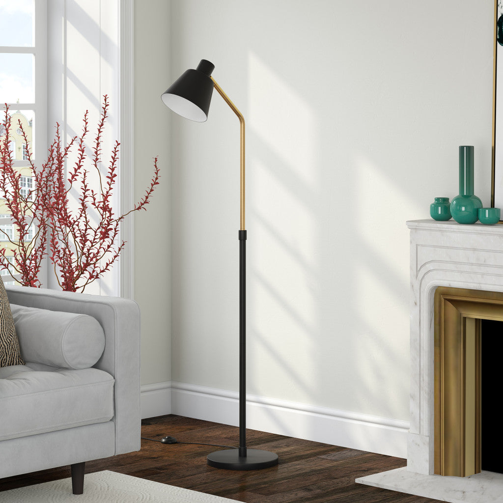 Add a bright anchor to your room with this 63" black reading floor lamp with black cone shade. A gorgeous black metal base bring just the right amount of pizzazz to this fabulous lamp. This good looking lamp includes a metal cone shaped shade. Next to your desk or favorite chair this single base task/reading lamp is designed to make your work or activities easier with concentrated light in just the space you need it. Use this lamp anywhere and elevate the look of the whole space. It is perfect for virtually any decor. 63" H x 11" W x 11" D