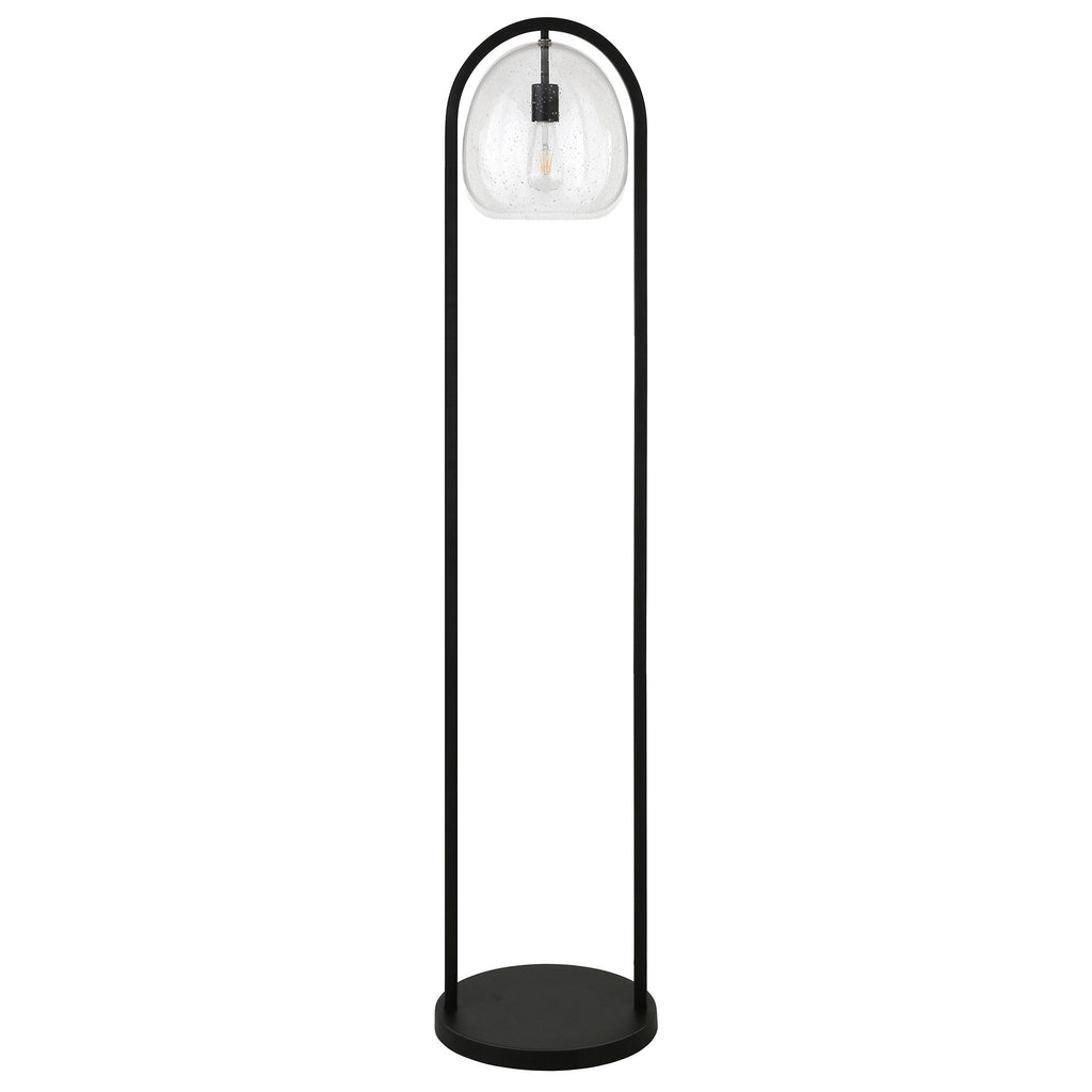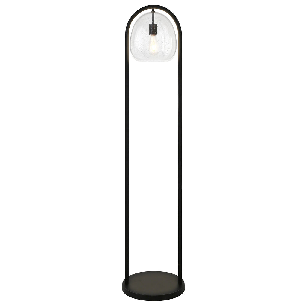 Embrace the good life with this hard working and stylish 65" black column floor lamp with clear seeded glass globe shade. The base of this lamp is made of black metal. The lamp light itself is covered by a glass, globe shaped shade, making this a classy piece that will complement most any interior. Unique and impactful, this column or tower shaped lamp is tall and rectangular emitting warm beautiful light. High quality design makes this a great lamp for not only lighting, but accenting a room with style. It is perfect for virtually any decor. 64.5" H x 14" W x 14" D