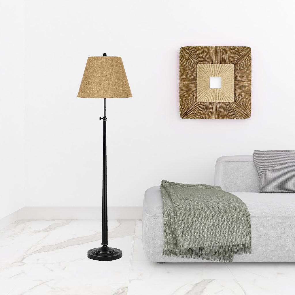 Add a bright anchor to your room with this 65" bronze adjustable traditional shaped floor lamp with brown empire shade. A gorgeous bronze metal base bring just the right amount of pizzazz to this fabulous lamp. The bronze base coloring infuses a warm and rich tone to your space. The bronze of this lamp creates a nice contrast with the brown fabric empire shaped shade. Classically styled, this traditional lamp features a straight pole that extends upwards from a single base. The light that this lamp throws is soft and warm to elevate the look of most any space in your home. The perfect lamp to create just the right natural and soothing light in your space. 65" H x 17" W x 17" D