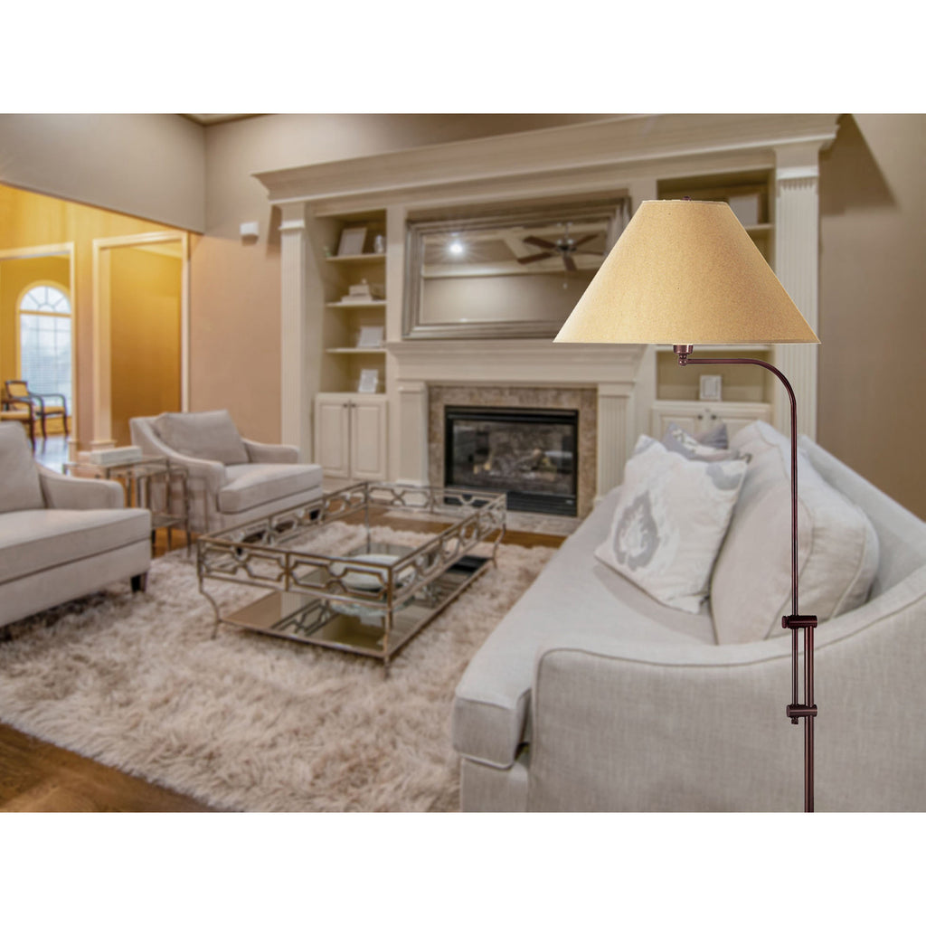 This 68" rusted adjustable traditional shaped floor lamp with brown empire shade is a great way to add some brightness to any corner of your home. The lamp is made of sturdy metal and features a rusted color. The lamp light itself is covered by a fabric, empire shaped shade, making this a classy piece that will complement most any interior. Classically styled, this traditional lamp features a straight pole that extends upwards from a single base. High quality design makes this a great lamp for not only lighting, but accenting a room with style. Bring some lite and good vibes into your space with this updated and stylishly designed lamp. 67.5" H x 21.75" W x 19" D