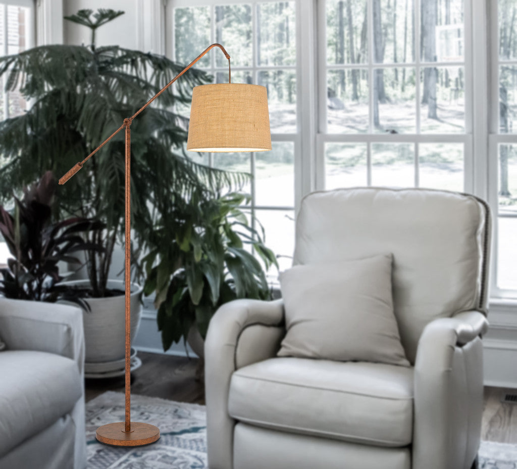 Truly a mix of design and functionality that doesn't compromise on style, this 68" rusted adjustable traditional shaped floor lamp with rust drum shade will be a great addition to your space. The base of this lamp is made of rusted metal. The rusted of this lamp creates a nice contrast with the rust fabric drum shaped shade. Classically styled, this traditional lamp features a straight pole that extends upwards from a single base. Use this lamp anywhere and elevate the look of the whole space. Bring some lite and good vibes into your space with this updated and stylishly designed lamp. 68" H x 47" W x 14" D
