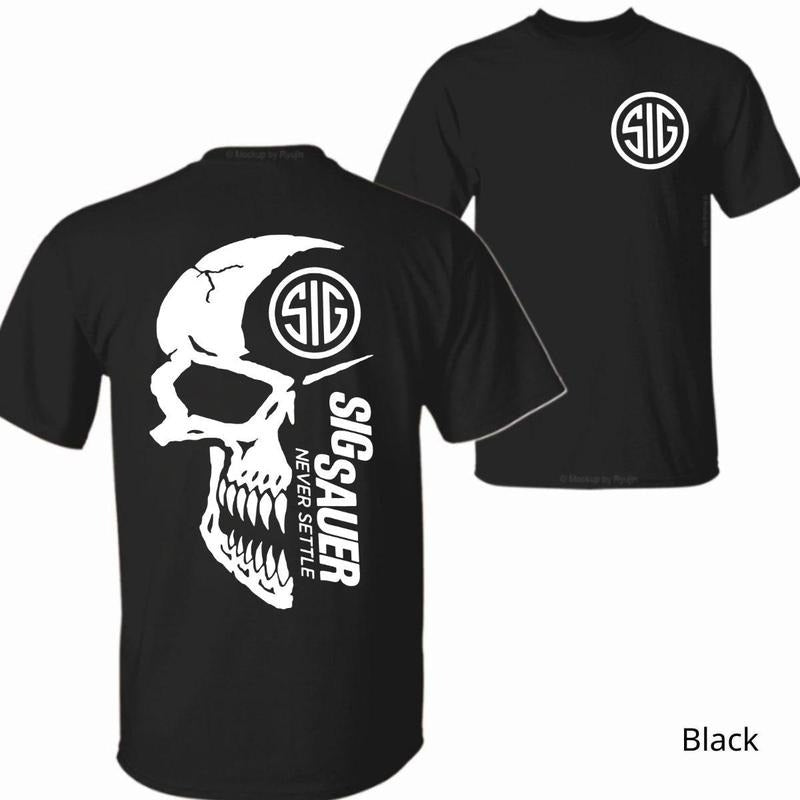 [Sale Up To 60%] Sig Sauer Tshirt Bold Skull Graphic With Sig Sauer Logo Perfect For Gun Enthusiasts Unisex Streetwear Shortsleeve Casual Menswear