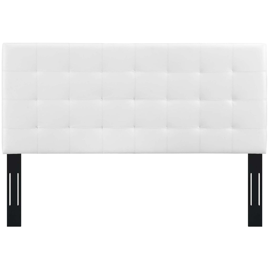 Enjoy simple elegance with the square-patterned design of Paisley. Featuring timeless biscuit tufting, Paisley updates the guest bedroom or master suite with charming appeal. A stylish full or queen headboard, Paisley is made of soft upholstered faux leather covering a durable fiberboard and plywood frame with dense foam padding. Solidly constructed with extra wide black-stained wood post legs that fit either full or queen bed frames, choose from three mounting positions with this tall, padded headboard that ranges from 46 - 54 inches in height. The Paisley full or queen headboard is a lavish addition that offers quality support while reclining and relaxing. Set Includes: One - Paisley Tufted Full / Queen Headboard