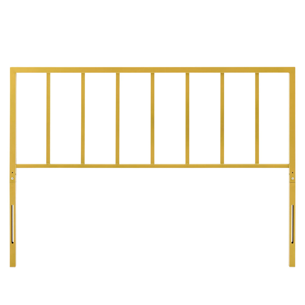 Elevate the look and feel of a master bedroom or guest bedroom with the Tatum Metal Queen Headboard. Featuring a streamlined silhouette with squared lines and spindle detail, this queen size headboard is a timeless design with a contemporary feel. Durable iron metal with a powder coated finish makes up the frame of this headboard for a sturdy construction that lasts. Create an aesthetic backdrop for all kinds of bedding styles with this height-adjustable headboard that's complete with seven different mounting positions to fit most queen beds. Assembly required. Set Includes: One - Tatum Queen Headboard