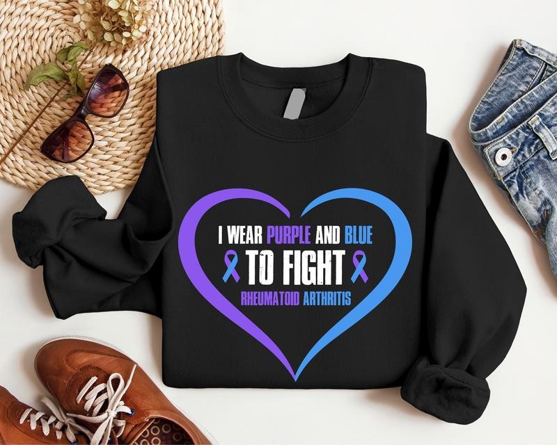 I Wear Purple And Blue To Fight Sweatshirt, Blue Purple Ribbon Hoodie, Survivor Gift Sweater, Rheumatoid Arthritis Sweatshirt, Support Gift Sweatshirt.