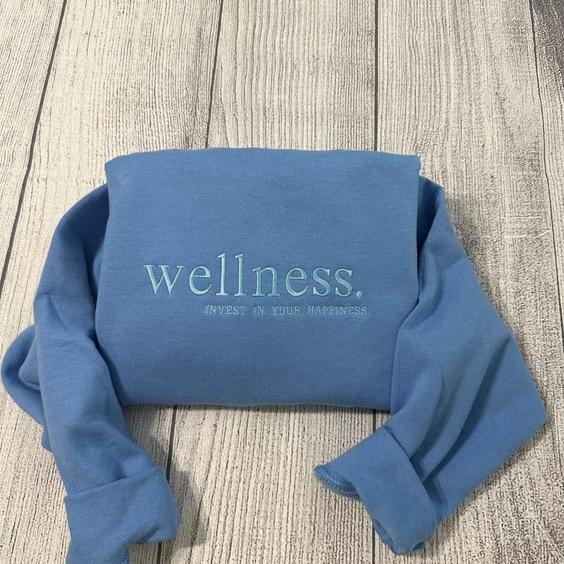 Wellness embroidered sweatshirt; inspeational words embroidery