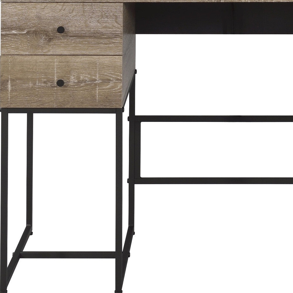 47" Brown and Black Unique Writing Desk With Four Drawers