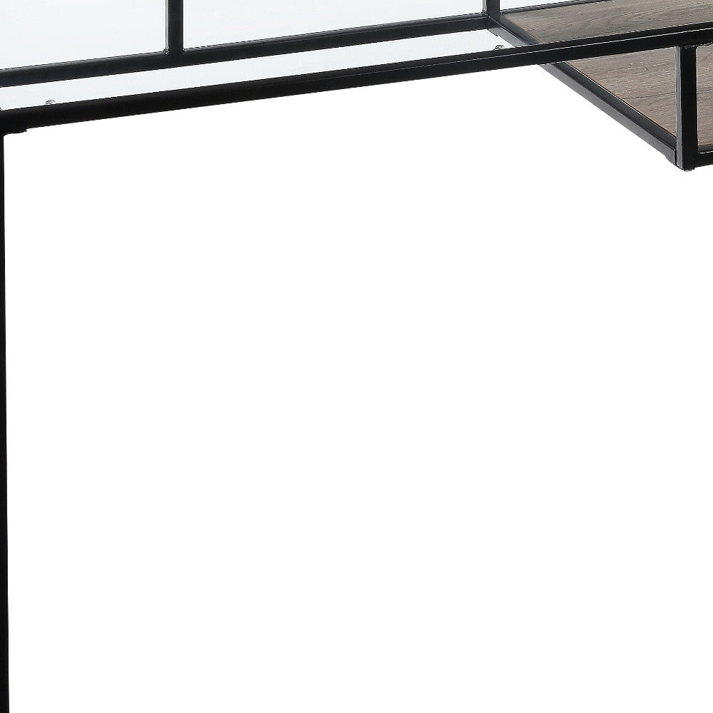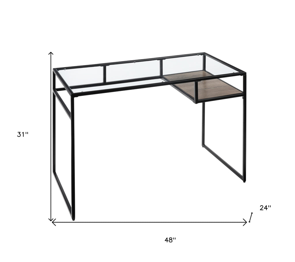 Bring this classic style 48-inch clear and black glass writing desk to your living room, home office or bedroom as a practical and fashionable accent. With a classic shape and style, this well made rectangular desk is a stylish way to keep your office space looking good. Designed so that you can adjust to your room and style preferences, this desk can be assembled in either direction. Forged with premium craftsmanship and design, this desk is built to last. 31-inch H x 48-inch W x 24-inch D