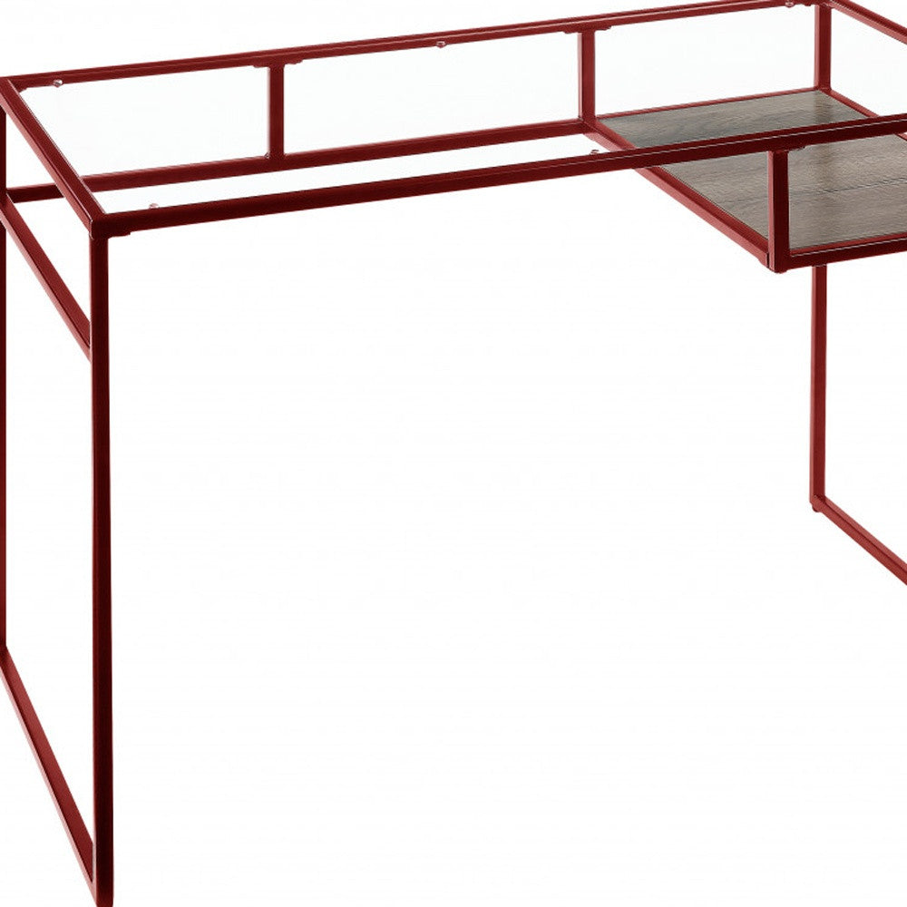 48" Clear and Red Glass Writing Desk