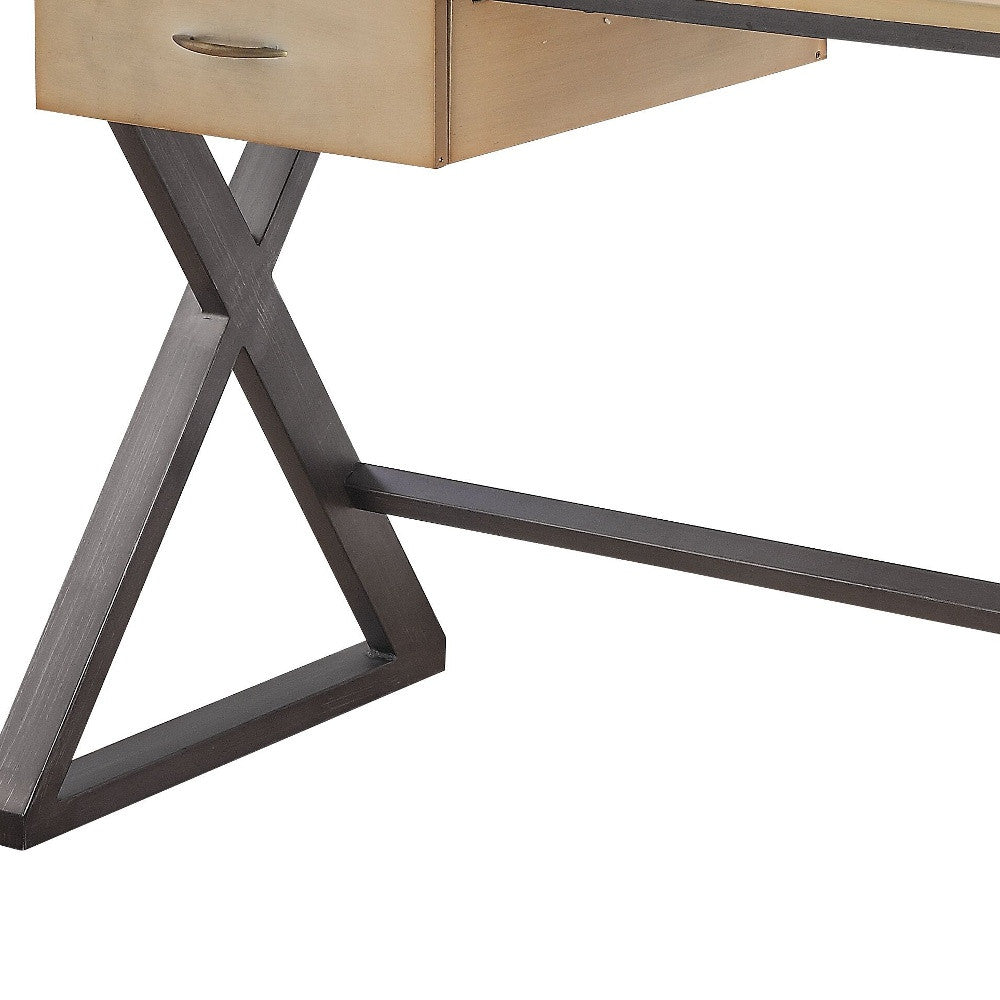 Bring this classic style 50-inch gold and black aluminum writing desk to your living room, home office or bedroom as a practical and fashionable accent. With a classic shape and style, this well made rectangular desk is a stylish way to keep your office space looking good. Made for the ultimate in convenience and versatility, this desk can be assembled in either direction. A single drawer gives this desk some hidden storage for your office essentials. Forged with premium craftsmanship and design, this desk is built to last. 31-inch H x 50-inch W x 22-inch D