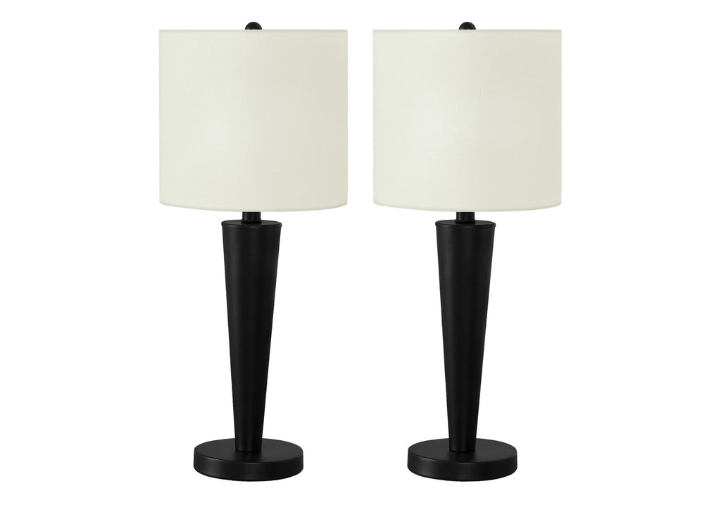 This set of two 24-inch black metal candlestick usb table lamp with ivory drum shade is a great way to add some brightness to any corner of your home. A gorgeous black metal base brings just the right amount of pizzazz to this fabulous lamp. The ivory drum linen shade is finishes this piece off nicely and symmetrically this standard table lamp is designed to provide general lighting to the area. Use this lamp anywhere and elevate the look of the whole space. It is perfect for virtually any decor. 24-inch H x 10-inch W x 10-inch D