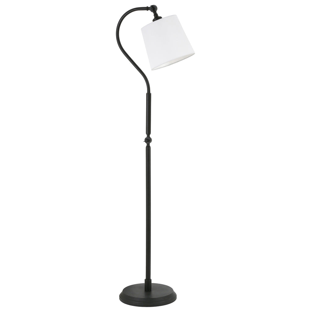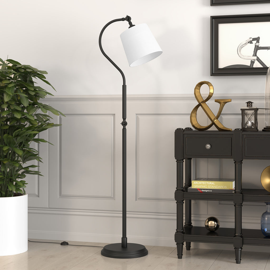 Add a bright anchor to your room with this 57" black arched floor lamp with white frosted glass drum shade. The lamp is made of sturdy metal and features a black color. The black of this lamp creates a nice contrast with the white fabric drum shaped shade. A great way to shed light over those hard to reach areas, this arched floor lamp has a single base with straight pole that extends upwards and a long curving arm. Use this lamp anywhere and elevate the look of the whole space. Bring some lite and good vibes into your space with this updated and stylishly designed lamp. 57" H x 12" W x 12" D