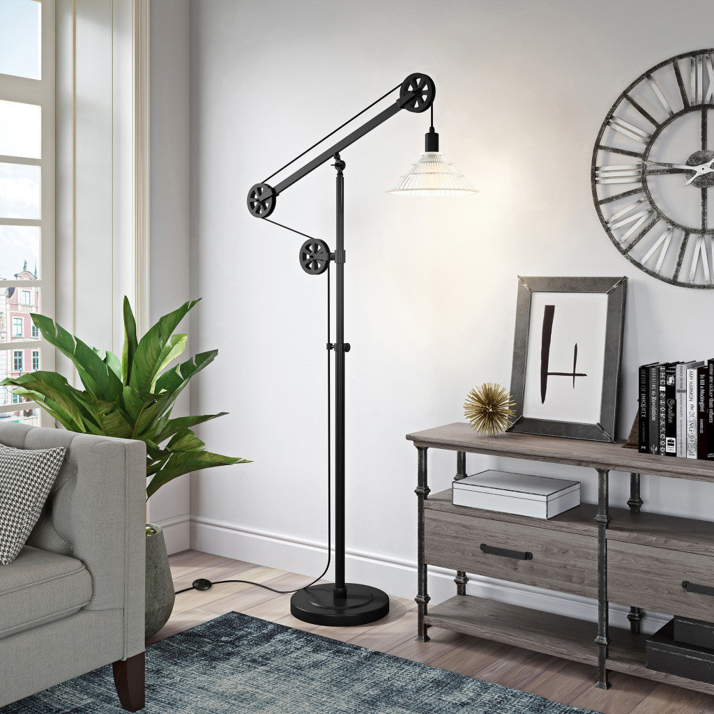 62" Black Traditional Shaped Floor Lamp With White Frosted Glass Drum Shade