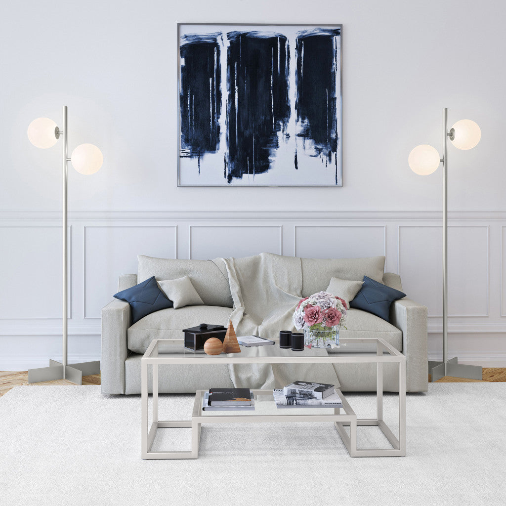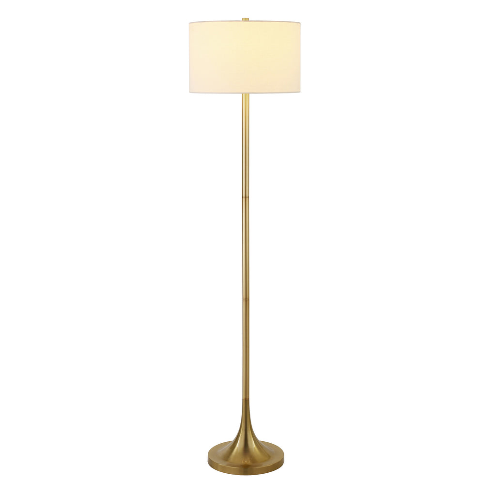 This 62" brass traditional shaped floor lamp with white frosted glass drum shade is the perfect combination of design and function mixed with basic good looks. A gorgeous brass metal base bring just the right amount of pizzazz to this fabulous lamp. The brass base coloring infuses a warm and rich tone to your space. The lamp light itself is covered by a fabric, drum shaped shade, making this a classy piece that will complement most any interior. Classically styled, this traditional lamp features a straight pole that extends upwards from a single base. Use this lamp anywhere and elevate the look of the whole space. It is perfect for virtually any decor. 62" H x 15" W x 15" D