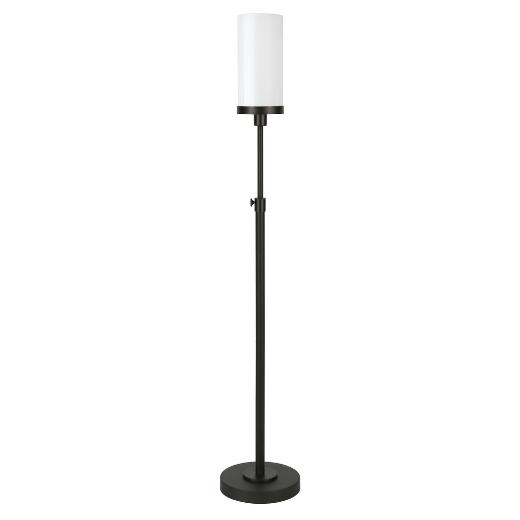 Add a bright anchor to your room with this 66" black torchiere floor lamp with white frosted glass drum shade. The base of this lamp is made of metal finished in a black tone. This good looking lamp includes a glass drum shaped shade. Add a soft warm glow to your space with this classic torchiere styled lamp. A straight pole extends upwards from a single base while the scooped shade shape refracts light upward and outward much like it's name sake,a torch. The light that this lamp throws is soft and warm to elevate the look of most any space in your home. The perfect lamp to create just the right natural and soothing light in your space. 66" H x 11" W x 11" D