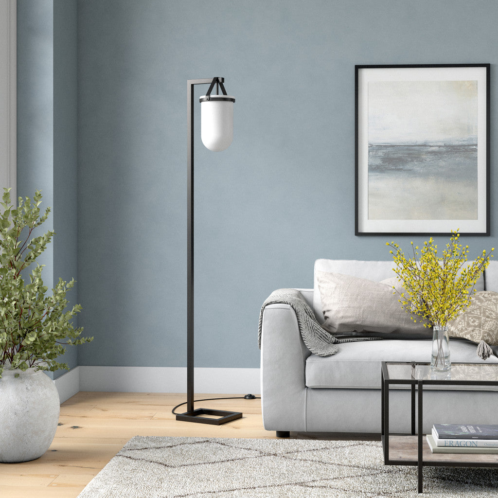 With this 68" black arched floor lamp with white frosted glass dome shade you bring design along with some warm ambient lighting to your space. The lamp is made of sturdy metal and features a black color. The black of this lamp creates a nice contrast with the white glass dome shaped shade. A great way to shed light over those hard to reach areas, this arched floor lamp has a single base with straight pole that extends upwards and a long curving arm. Use this lamp anywhere and elevate the look of the whole space. It is perfect for virtually any decor. 68" H x 10" W x 9" D