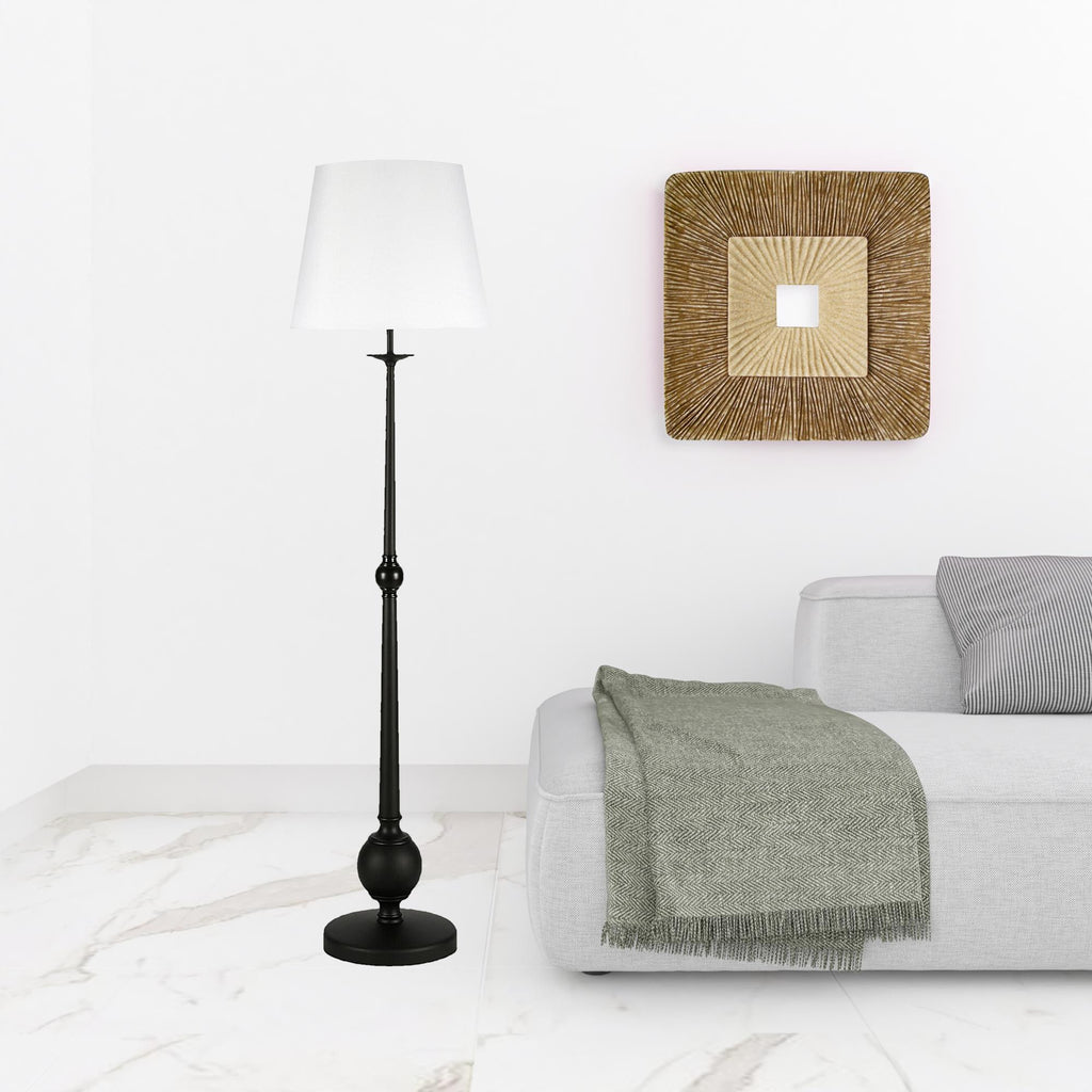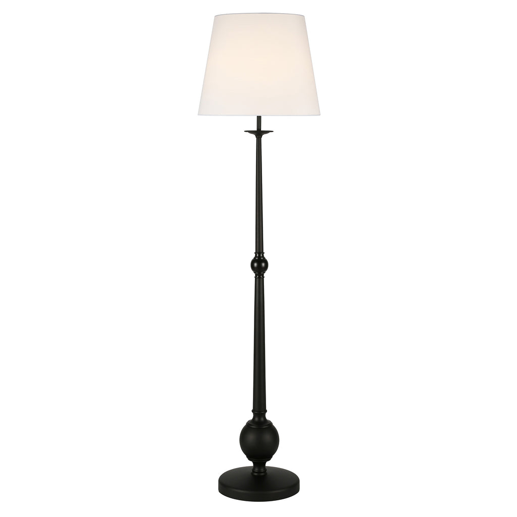 Add a bright anchor to your room with this 68" black traditional shaped floor lamp with white frosted glass drum shade. A gorgeous black metal base bring just the right amount of pizzazz to this fabulous lamp. The lamp shade itself has a drum shape and is made of fabric, which makes it a perfect choice. Classically styled, this traditional lamp features a straight pole that extends upwards from a single base. High quality design makes this a great lamp for not only lighting, but accenting a room with style. It is perfect for virtually any decor. 68" H x 17" W x 17" D