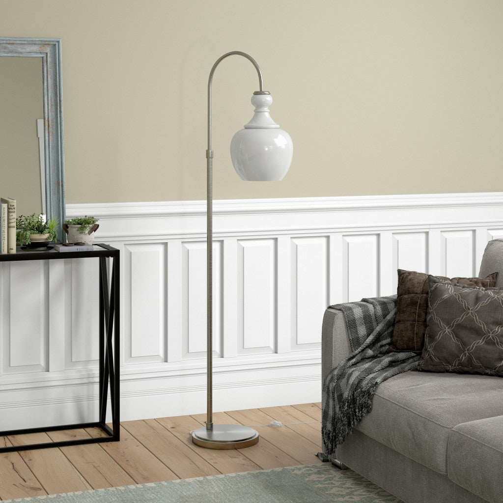 Bring of level of elegance and charm to your space with this good looking 70" black arched floor lamp with clear transparent glass dome shade. The base of this lamp is made of black metal. The lamp shade itself has a dome shape and is made of glass, which makes it a perfect choice. A great way to shed light over those hard to reach areas, this arched floor lamp has a single base with straight pole that extends upwards and a long curving arm. Use this lamp anywhere and elevate the look of the whole space. It is perfect for virtually any decor. 70" H x 12" W x 19" D