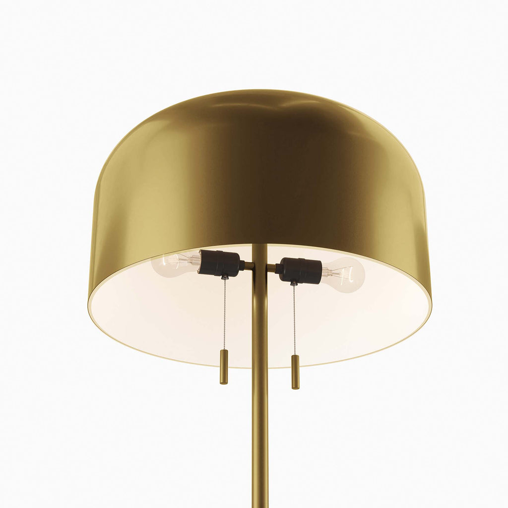 Enrich your home or apartment with the modern design of the Avenue Floor Lamp. Designed to give purposeful lighting in the corner of a bedroom, home office space, living room, lounge area, or reading nook, this floor light features a sleek dome shade giving it a simple contemporary style. This lamp is complete with a black fabric electrical cord and two pull chains to turn the lights on and off. This floor lamp is ETL listed and requires two E26 bulb 60W max or LED equivalent (not included). Set Includes: One - Avenue Floor Lamp