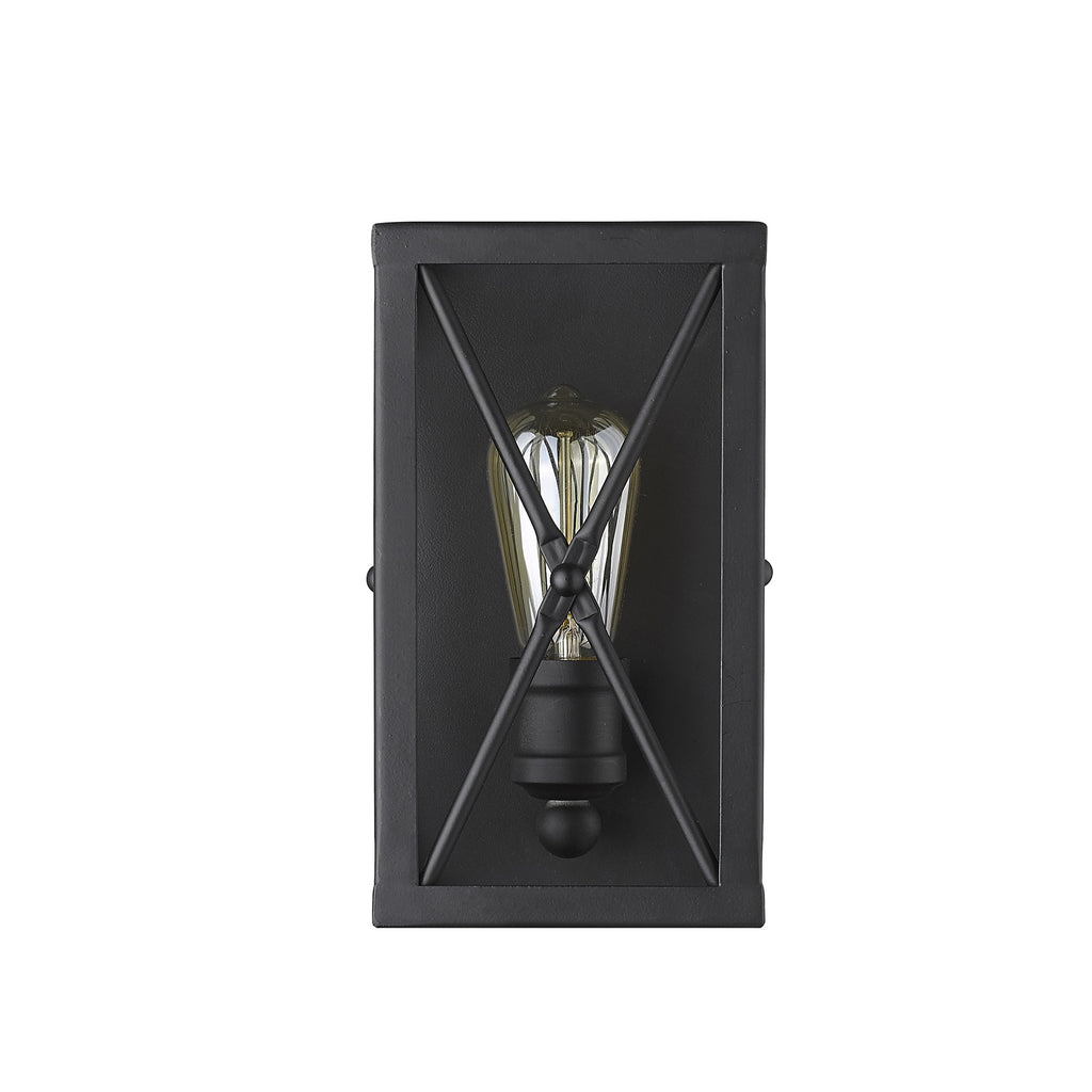 Update the lighting fixtures in your living room or bedroom with this Matte Black Metal Geometric Wall Light. This wall light sits flush with the wall and has a solid backing that allows for safe and secure hanging. The shape of the light is a rectangle. The top and bottom are hollow while the sides have an X-shaped design inside them. The bulb is visible through the matte black colored body which gives this light a very industrial look. Use it in on its own or in groups around your home to elevate the look of any space. 10" H x 5.5" W x 4.5" D