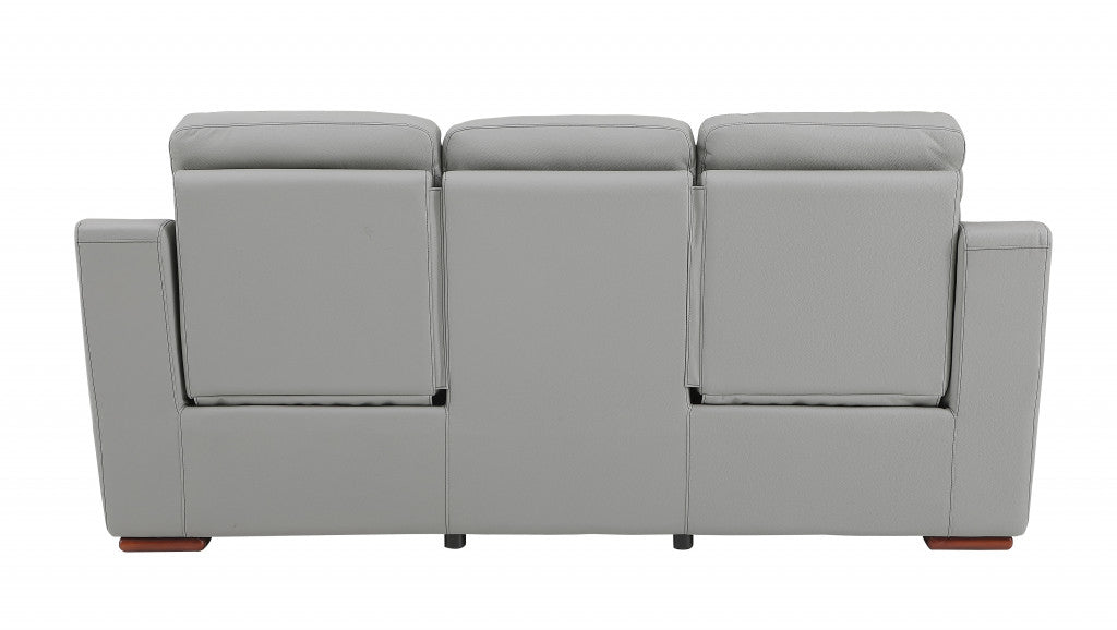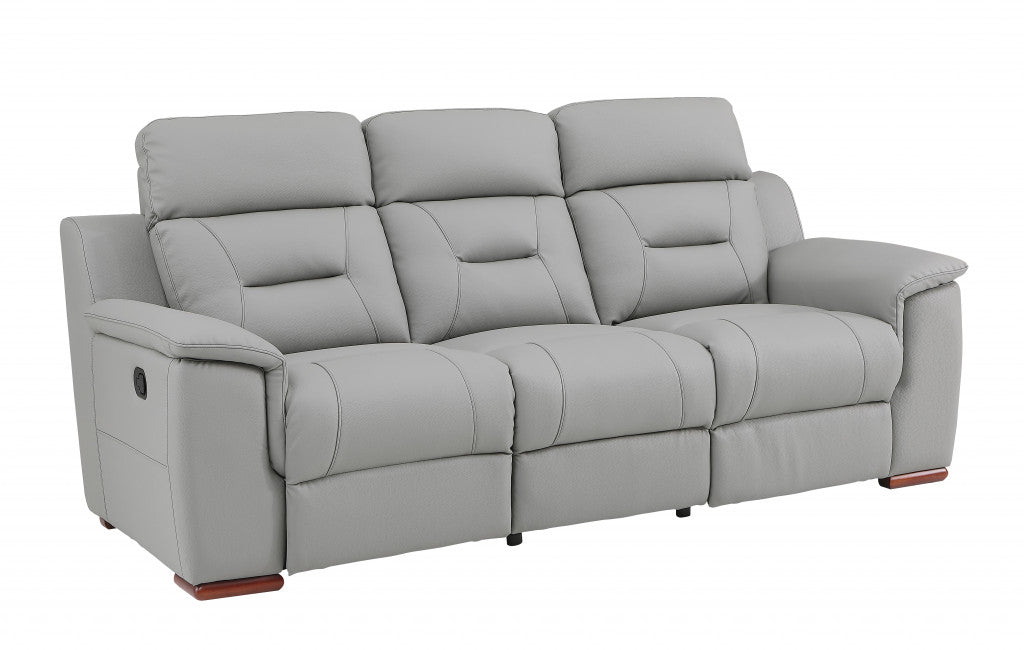 With a look and feel like leather, this 90-inch gray and brown faux leather sofa is made from sturdy and resilient faux leather to stand up to the test of time. Solid colors give you lots of decorative options and are easy to work into your decor scheme. Pillow top arms offer a comfy place to rest. Brown stainless steel legs effortlessly elevate the room and add a touch of contemporary design. Built to last, this sofa will be a great centerpiece for your room. 41-inch H x 90-inch W x 41-inch D